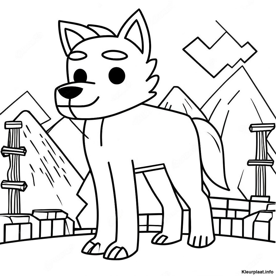 Avontuurlijke Minecraft Wolf Kleurplaat