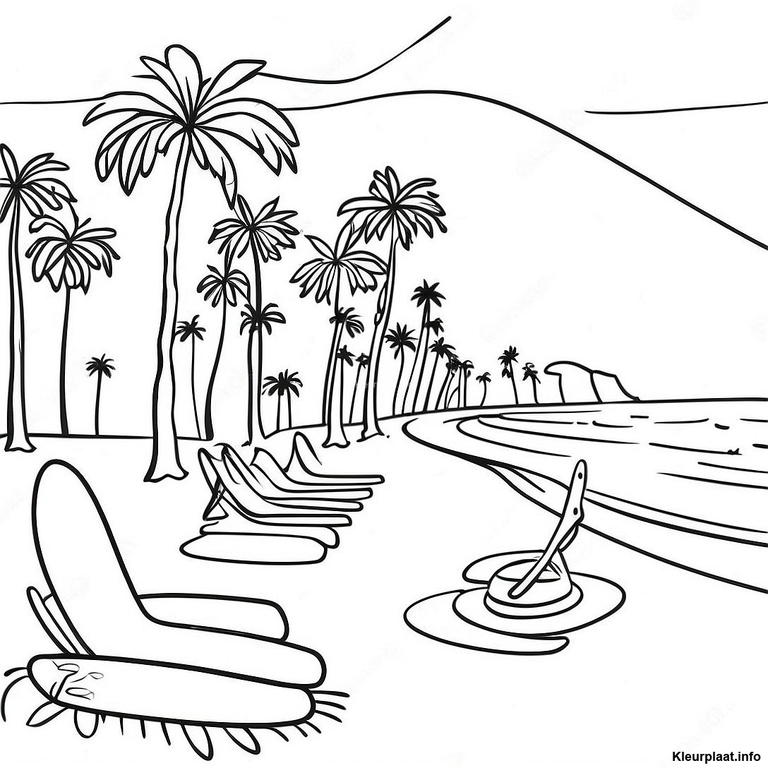 Download Afdrukbare PDF van Barcelona Strandscène Kleurplaat