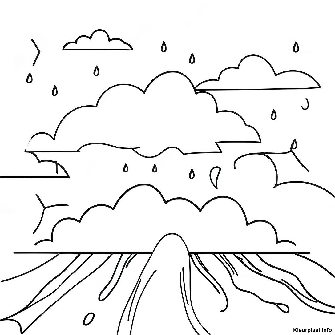 Download Afdrukbare PDF van Bewolkte Lucht Met Regen Kleurplaat