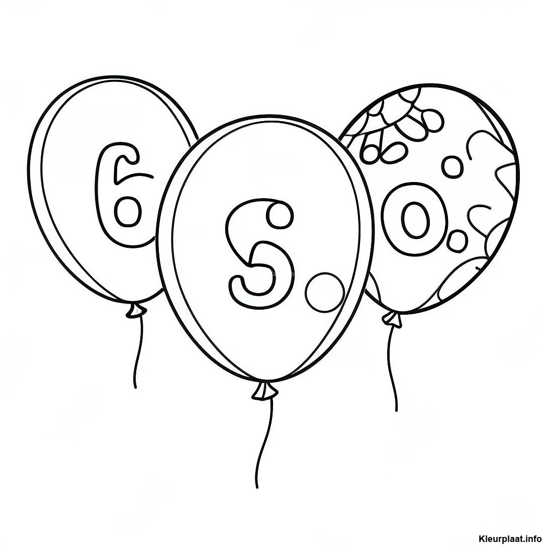 Blije Gelukkige 6e Verjaardag Ballonnen Kleurplaat