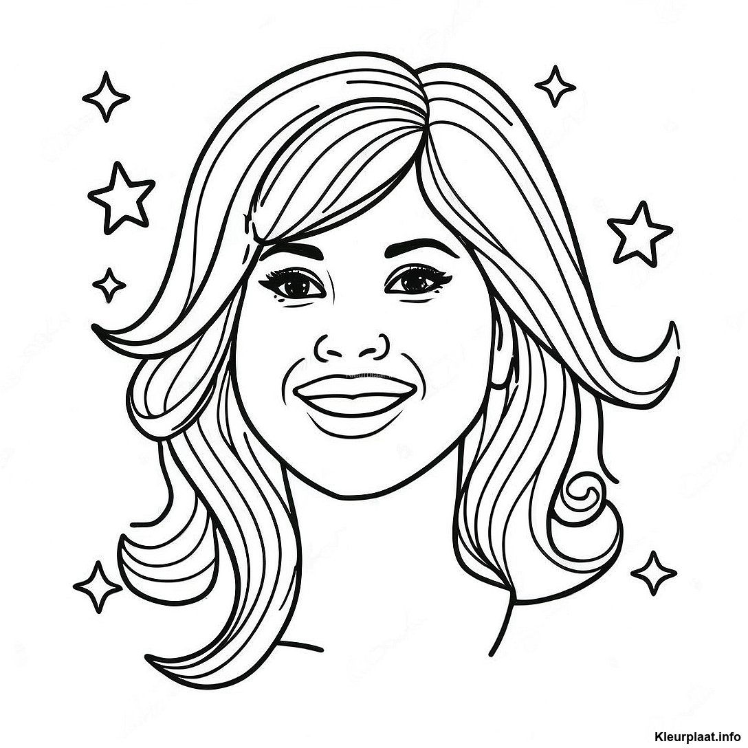 Blije Selena Met Sterren Kleurplaat