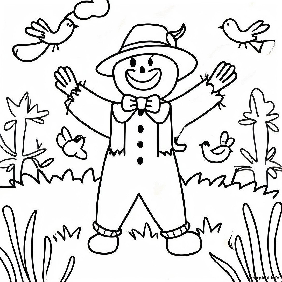 Blije Vogelverschrikker Met Kleurrijke Vogels Kleurplaat 54714 11979