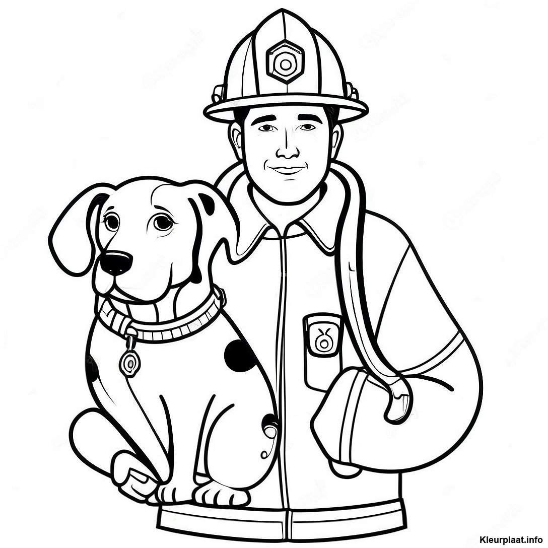 Download Afdrukbare PDF van Brandweerman Met Dalmatiër Kleurplaat