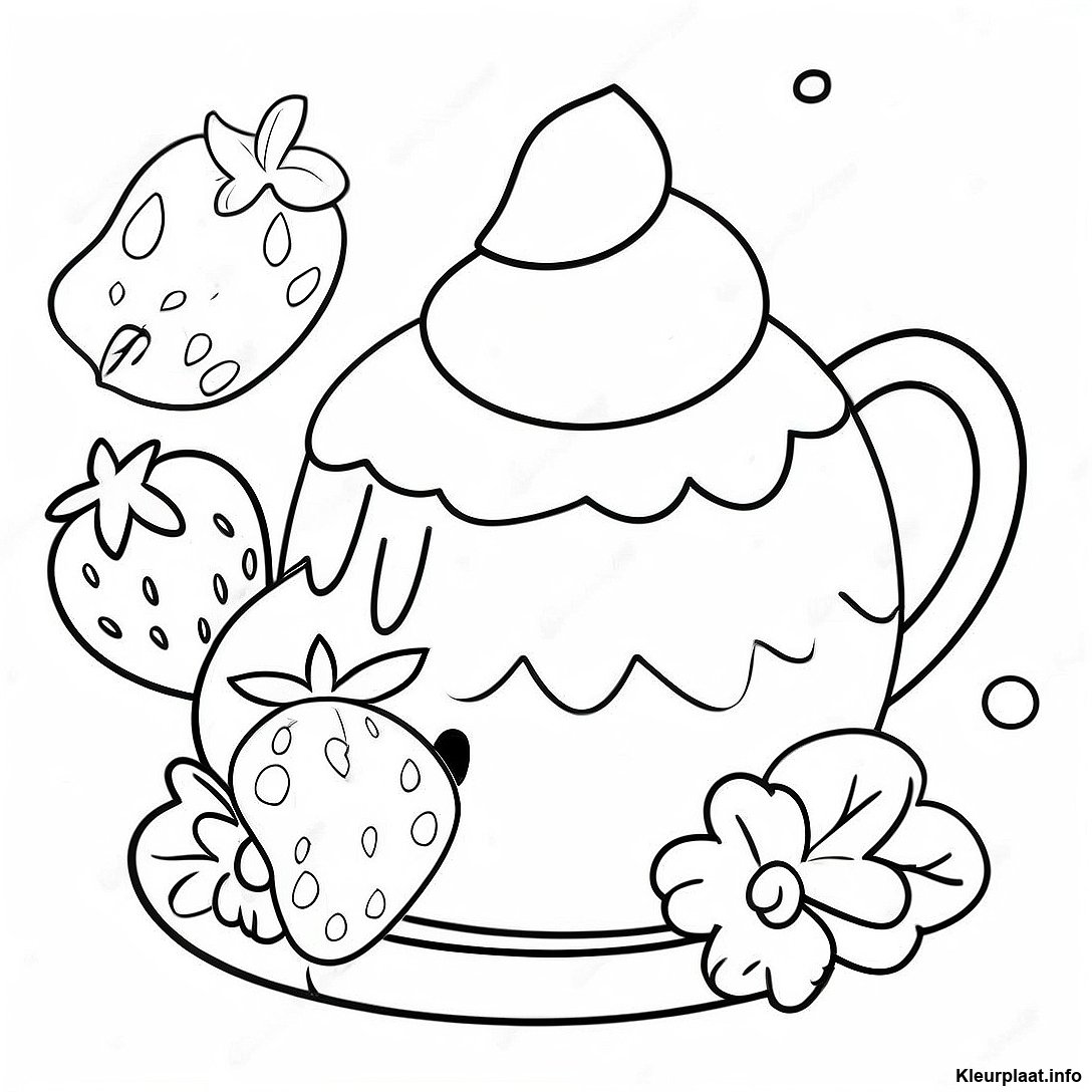 Charmante Aardbeientaart Theeparty Kleurplaat