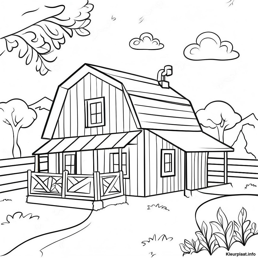 Download Afdrukbare PDF van Charmante Boerderij Met Schuur Kleurplaat