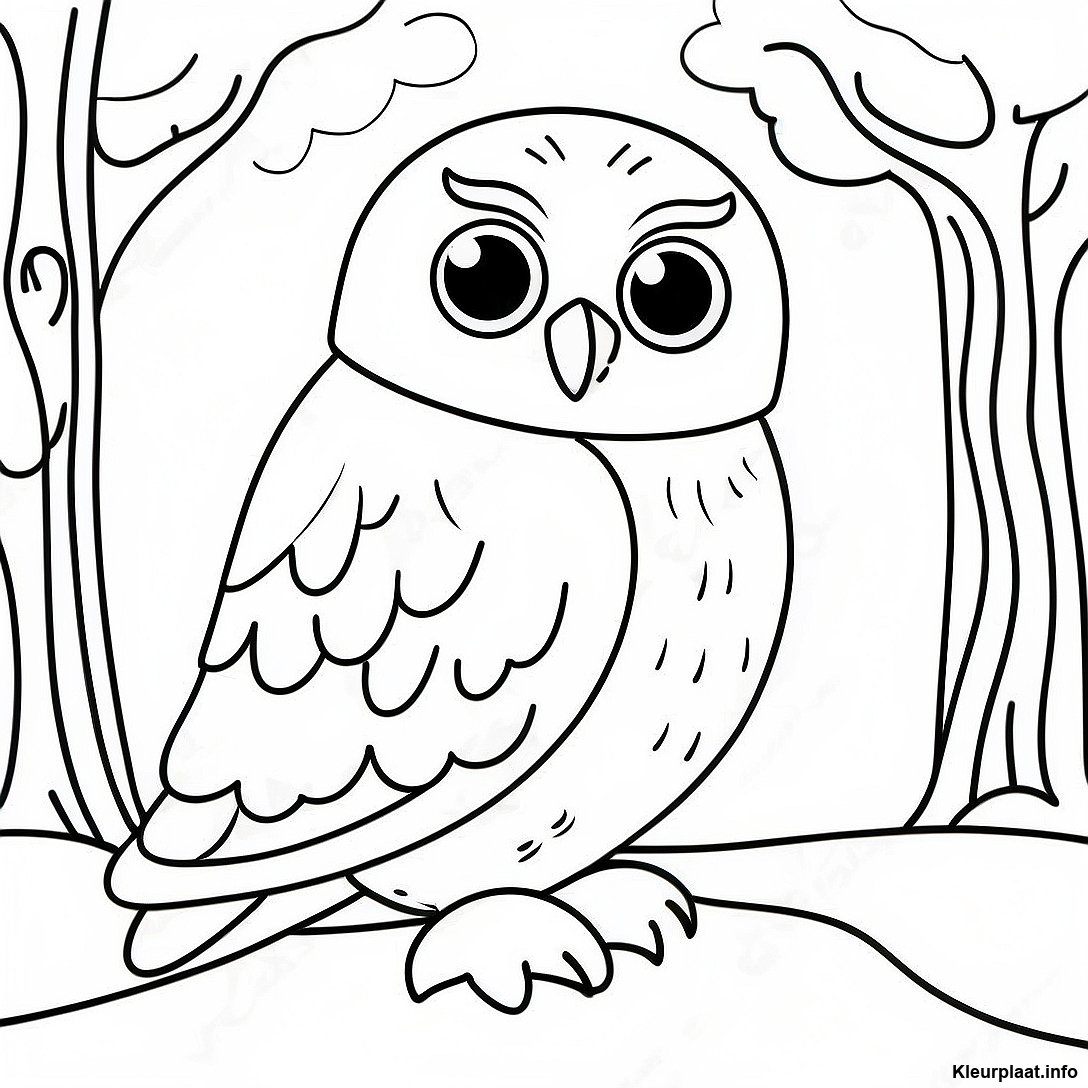 Charmante Kleurplaat Van Een Sneeuwuil In Een Winterlandschap