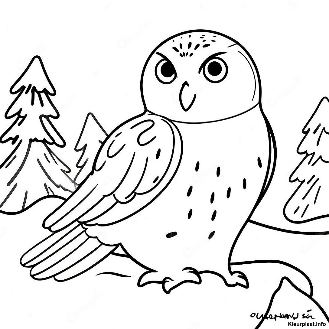 Charmante Kleurplaat Van Een Sneeuwuil In Een Winterlandschap