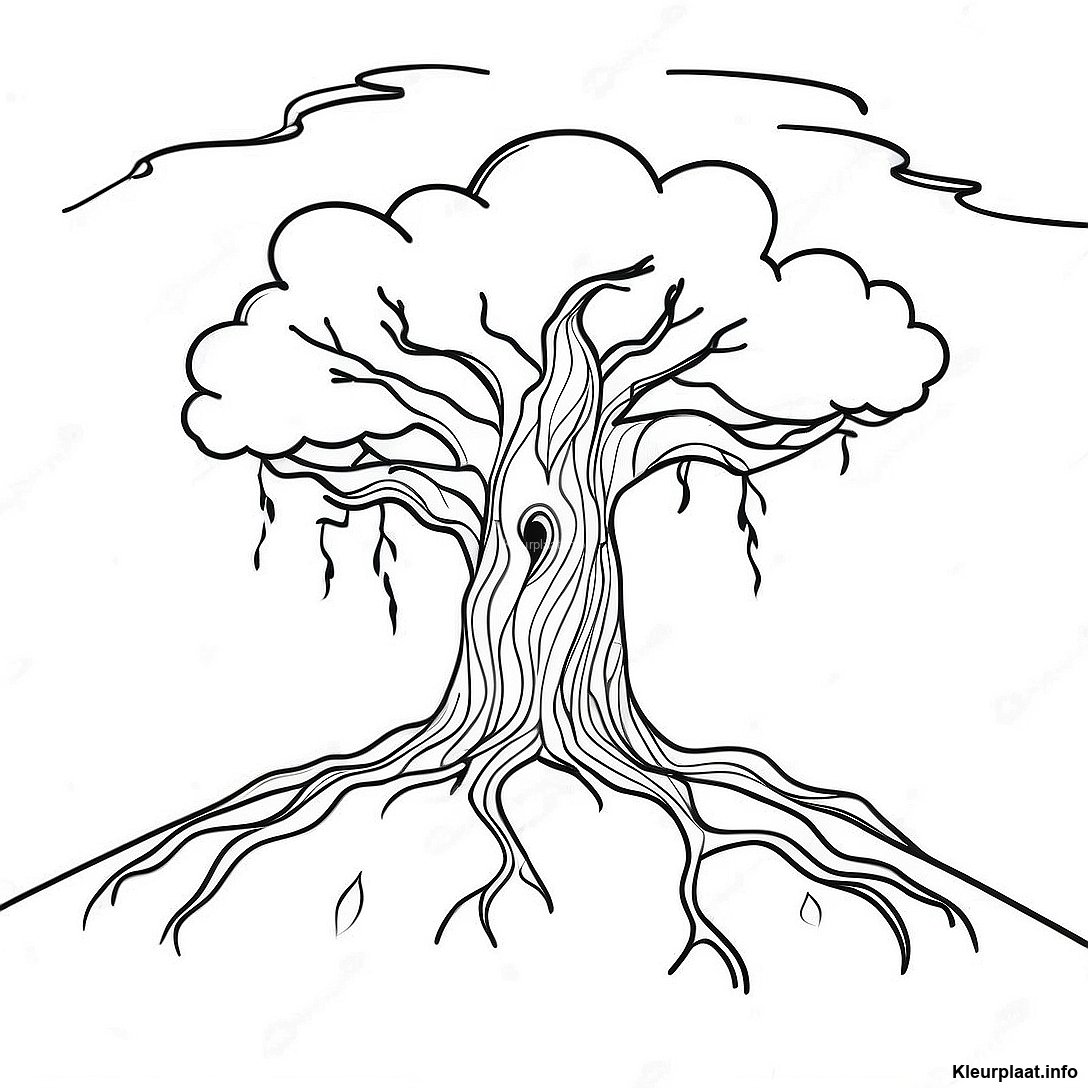 Eenzaam Boom In Een Stormachtige Lucht Kleurplaat
