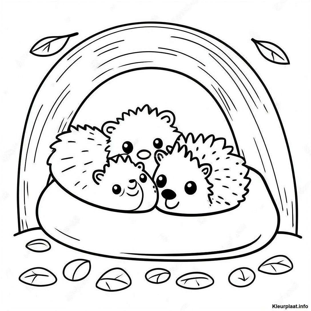 Download Afdrukbare PDF van Egel Familie In Een Gezellige Hol Kleurplaat