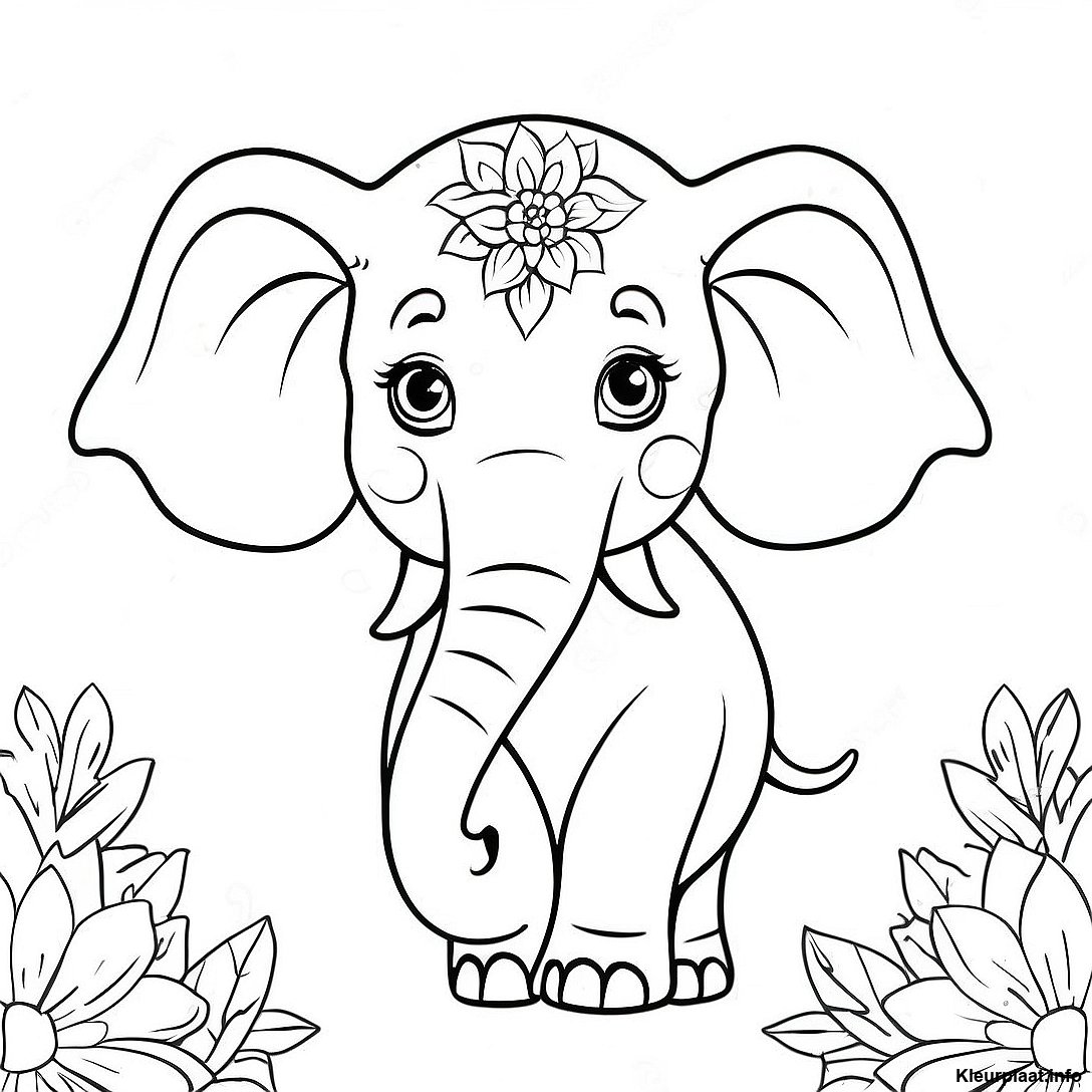 Download Afdrukbare PDF van Elegante Olifant Met Bloemen Kleurplaat