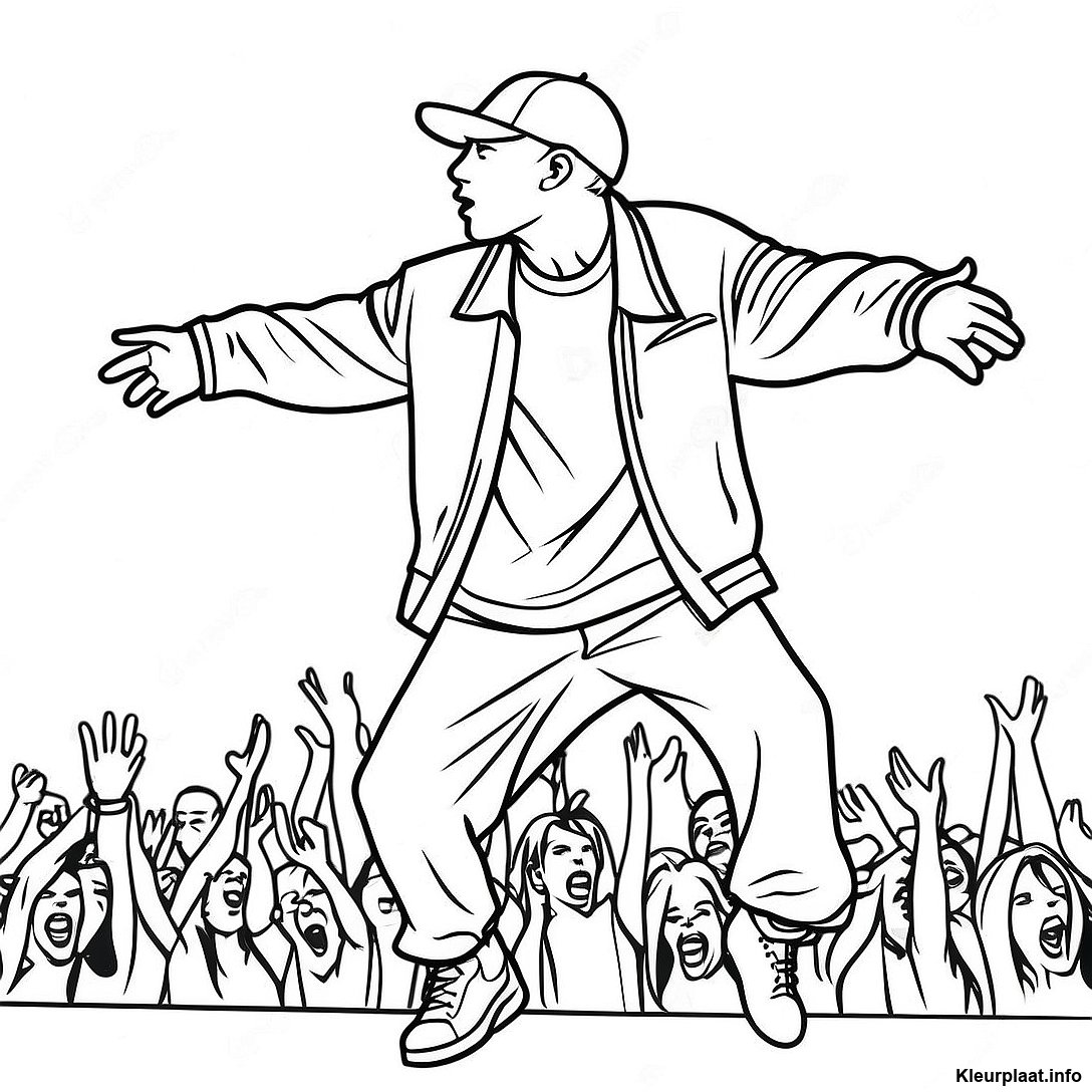Download Afdrukbare PDF van Eminem Optredend Op Het Podium Kleurplaat