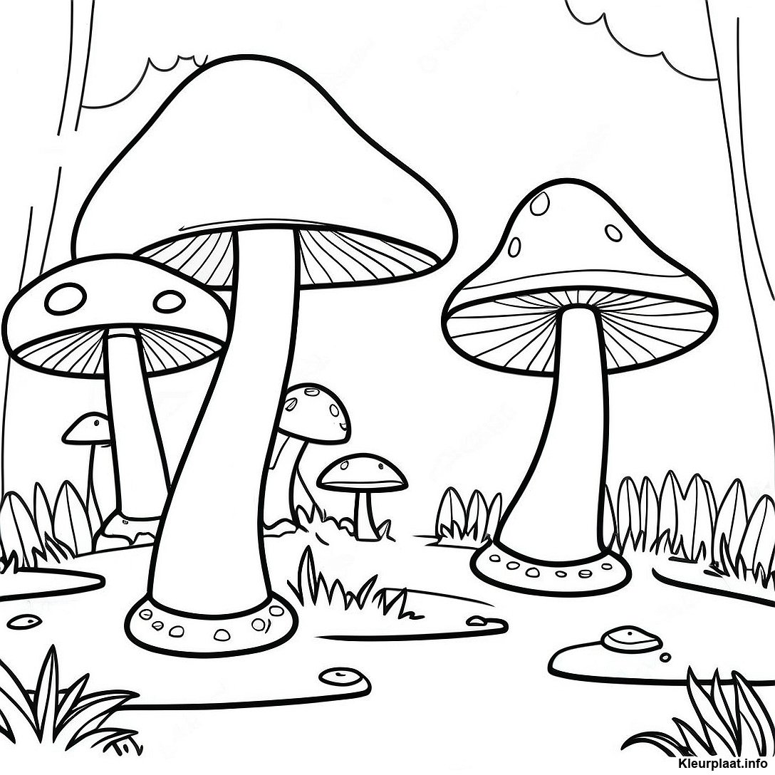 Fantasie Paddenstoelen Dorp Kleurplaat