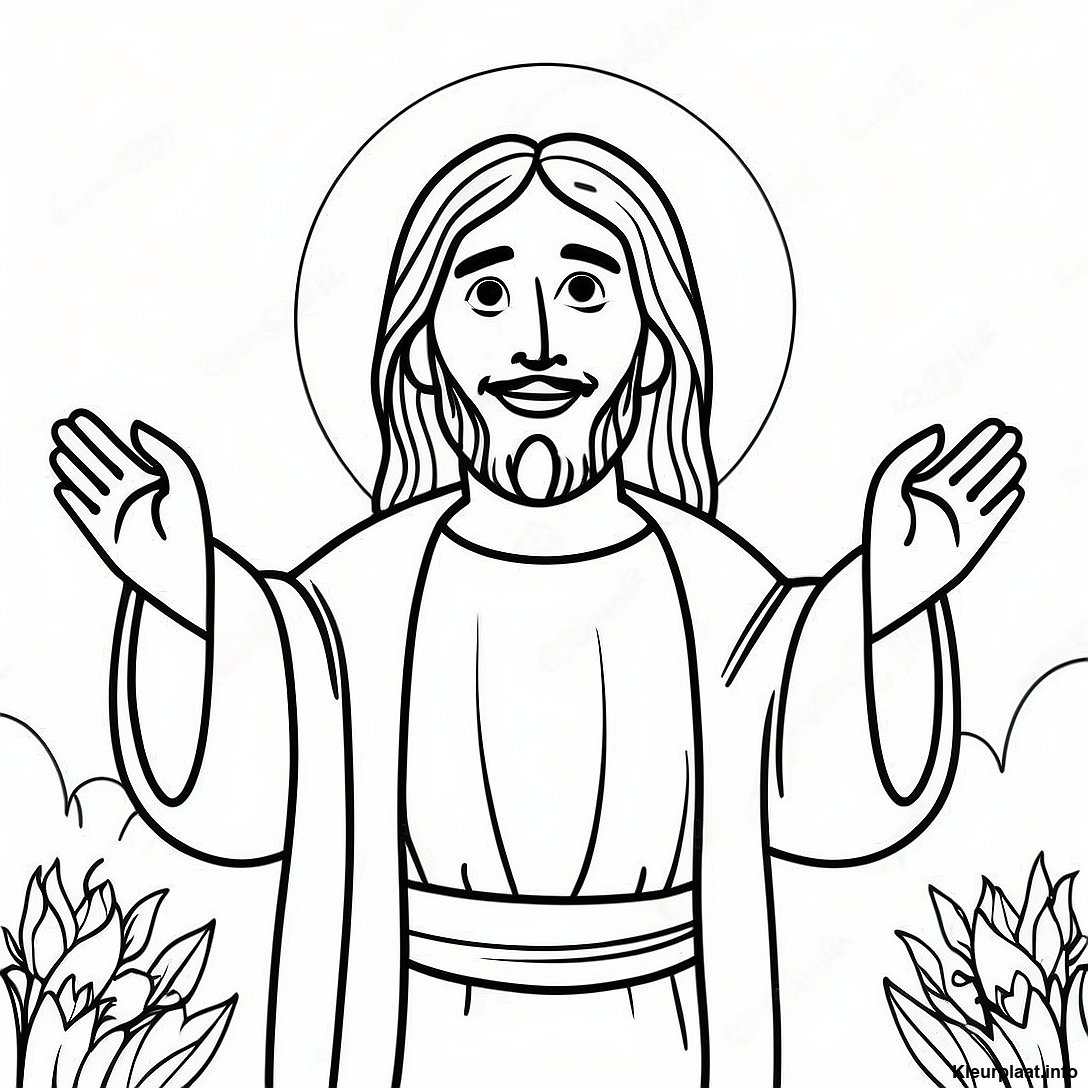 Gelukkige Jezus Met Open Armen Kleurplaat