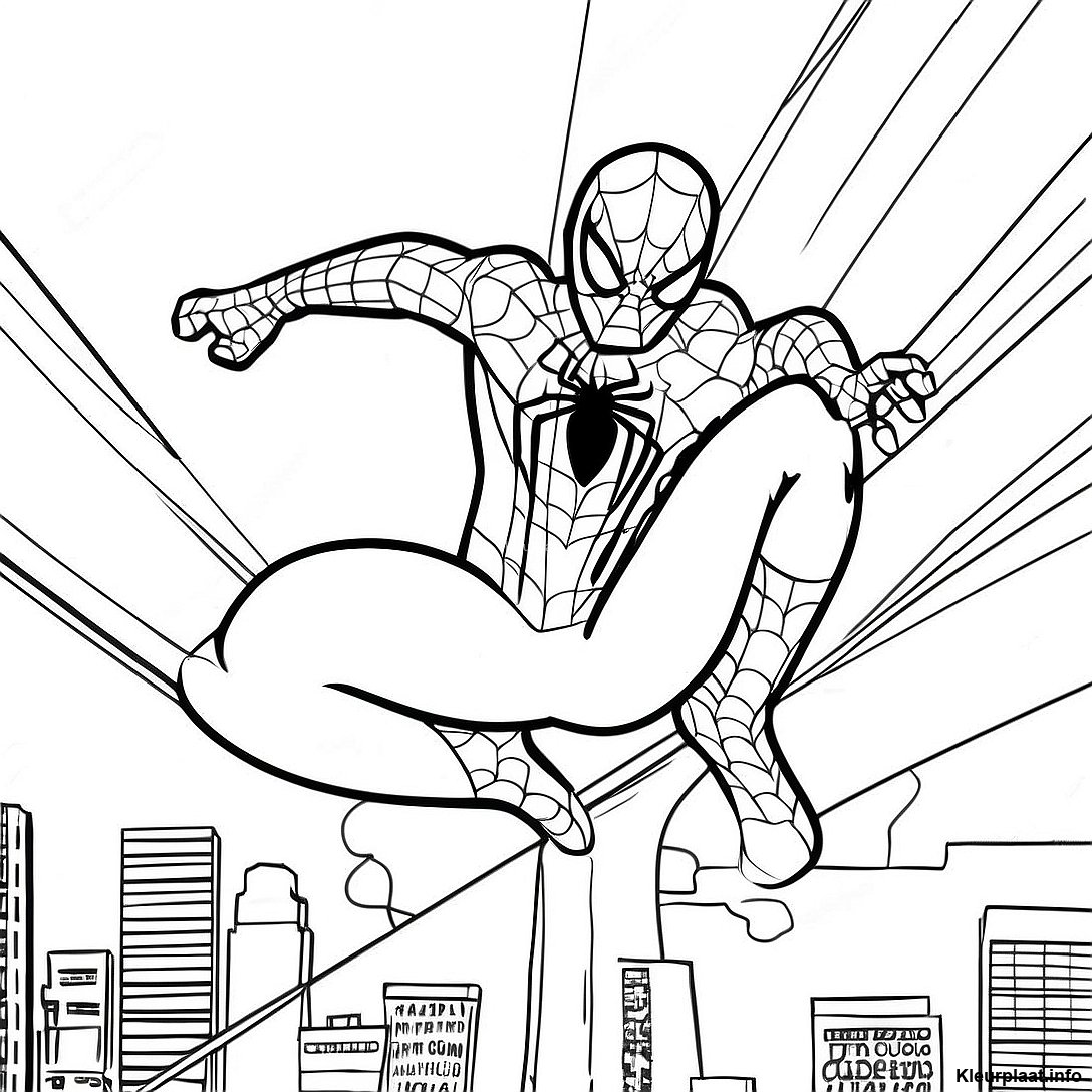 Spider Man Slingeren door de Stad Kleurplaat
