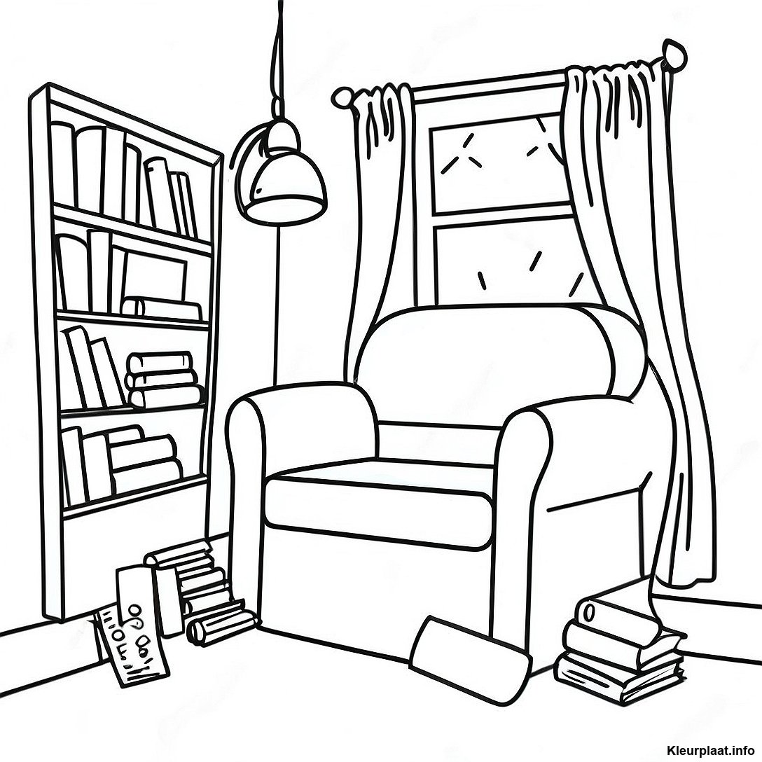 Download Afdrukbare PDF van Gezellige Leeshoek Kleurplaat