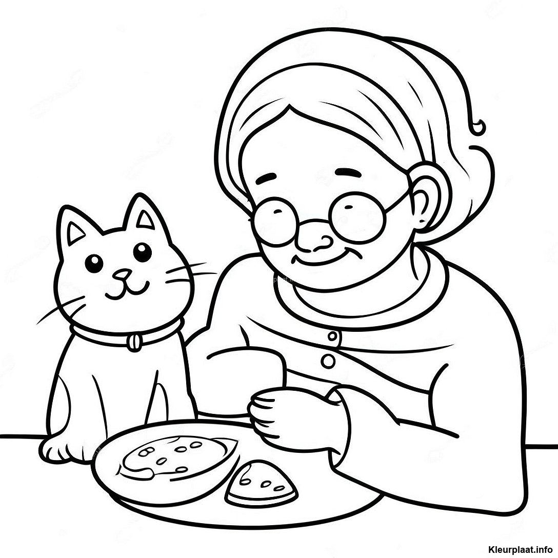 Gezellige Oma Met Een Kat Kleurplaat