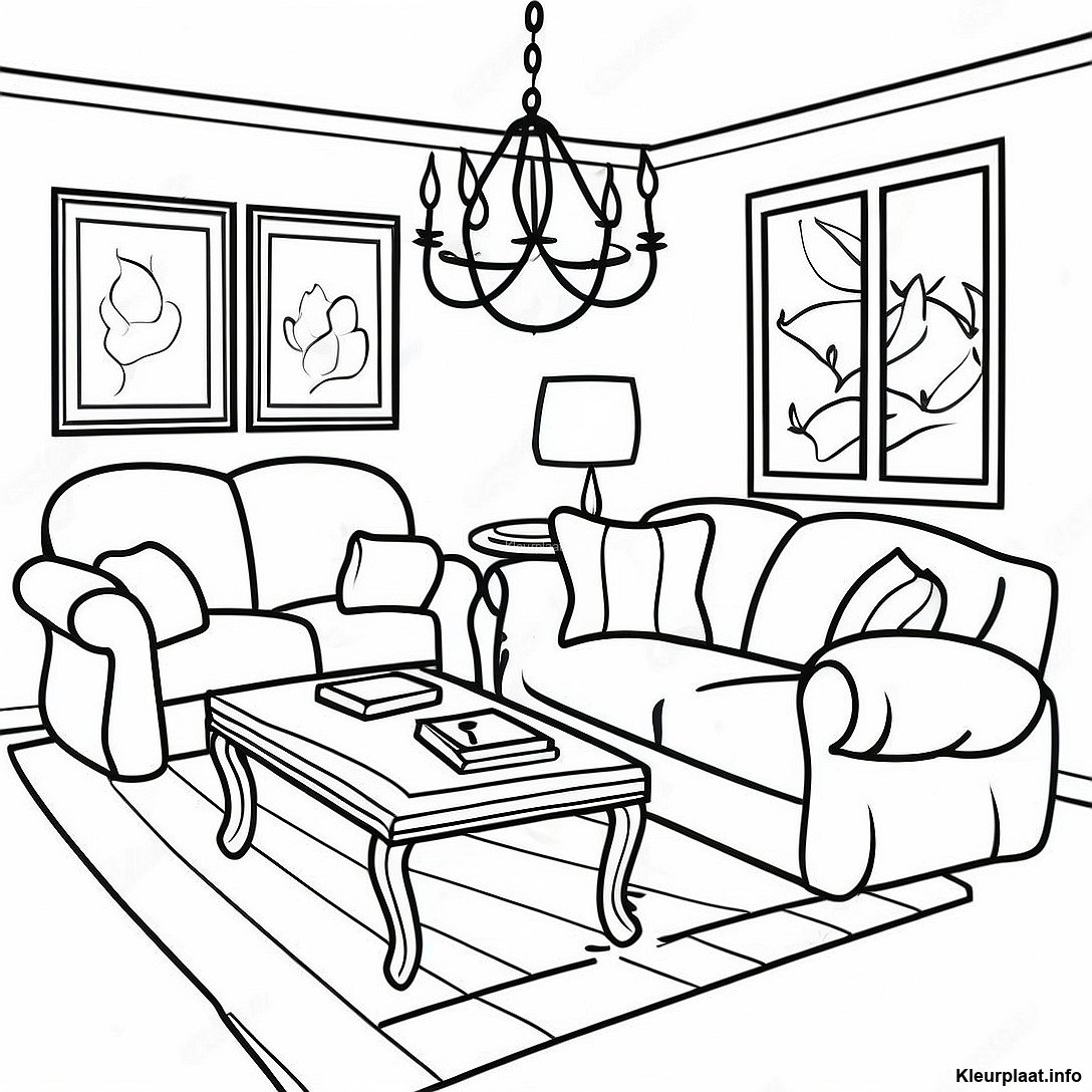 Download Afdrukbare PDF van Gezellige Woonkamer Kleurplaat