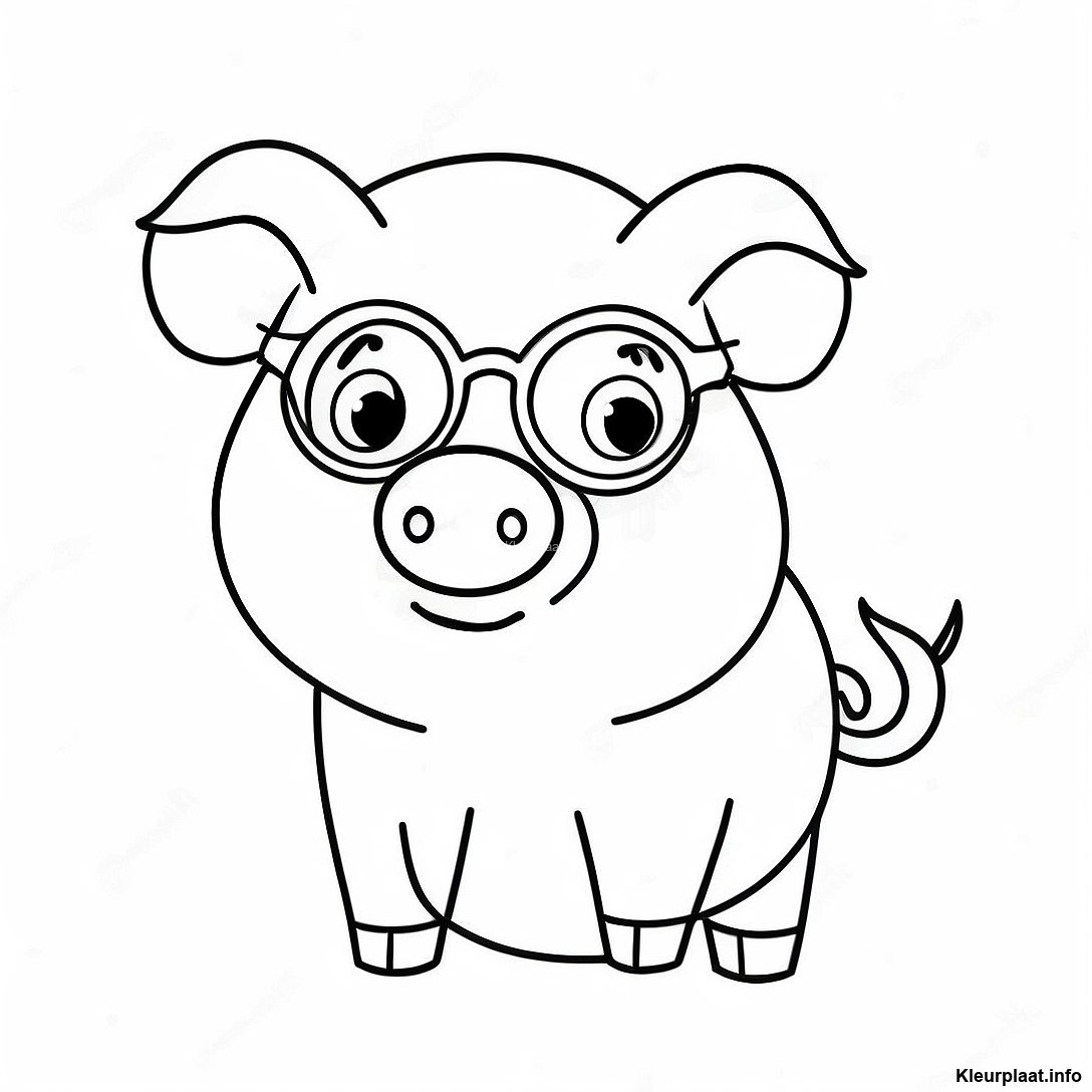 Download Afdrukbare PDF van Grappig Varkentje Met Bril Kleurplaat