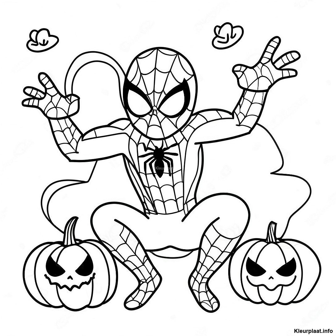 Griezelige Spiderman Met Pompoenen Kleurplaat 93019 32527