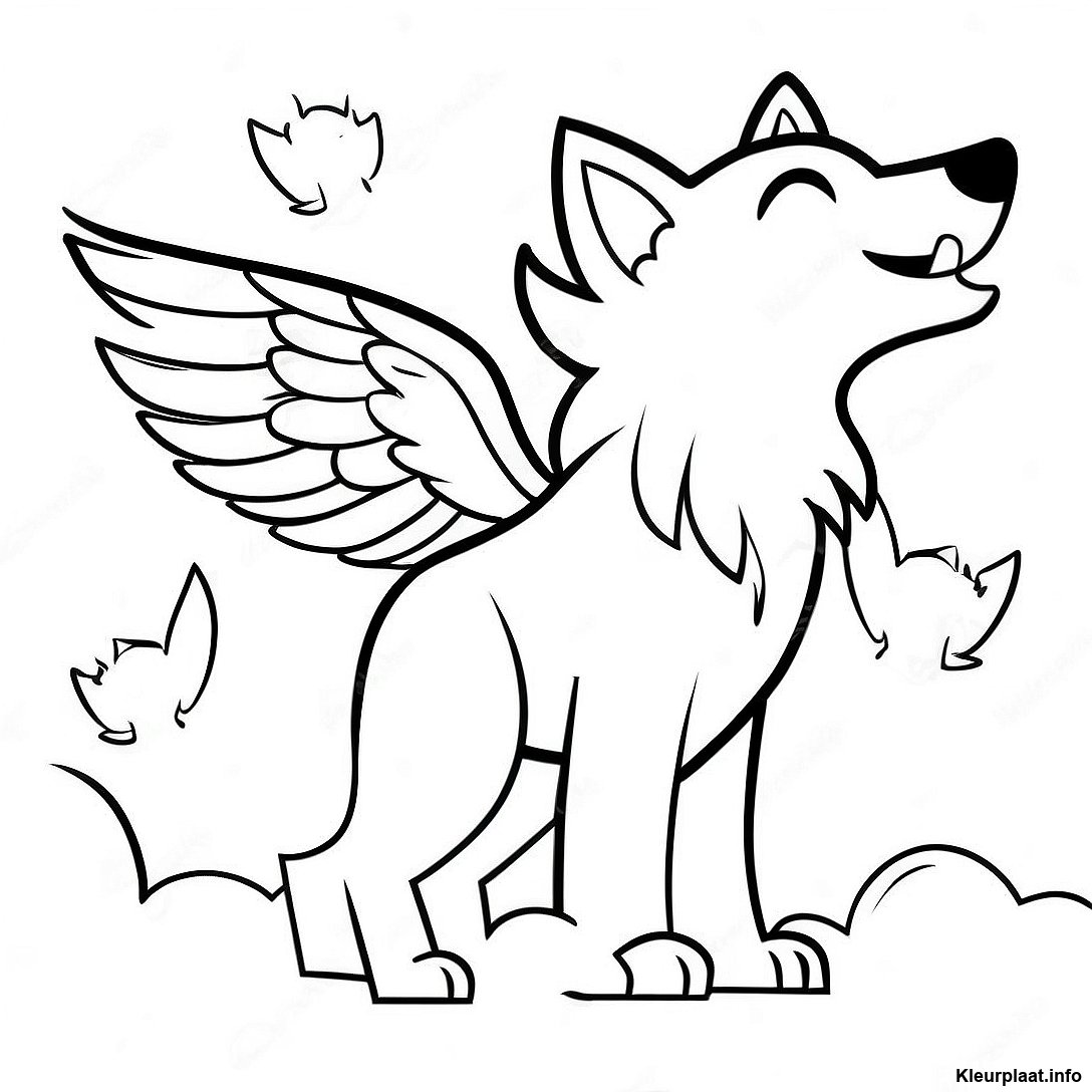 Huilende Wolf Met Kleurrijke Vleugels Kleurplaat