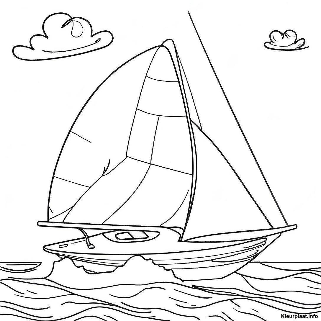Kleurige Zeilboot Op De Oceaan Kleurplaat