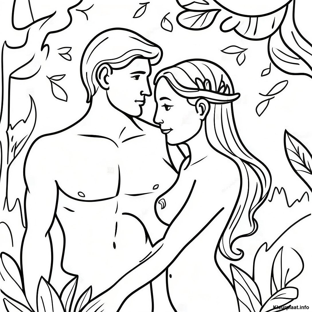 Download Afdrukbare PDF van Kleurplaat Van Adam En Eva