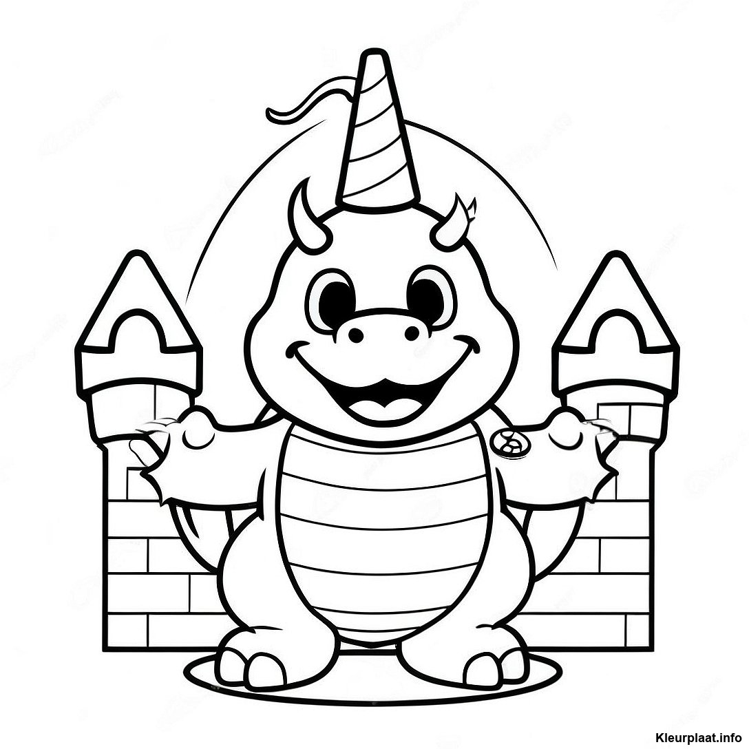 Kleurplaat Van Bowser Jr In Een Kleurrijk Kasteel