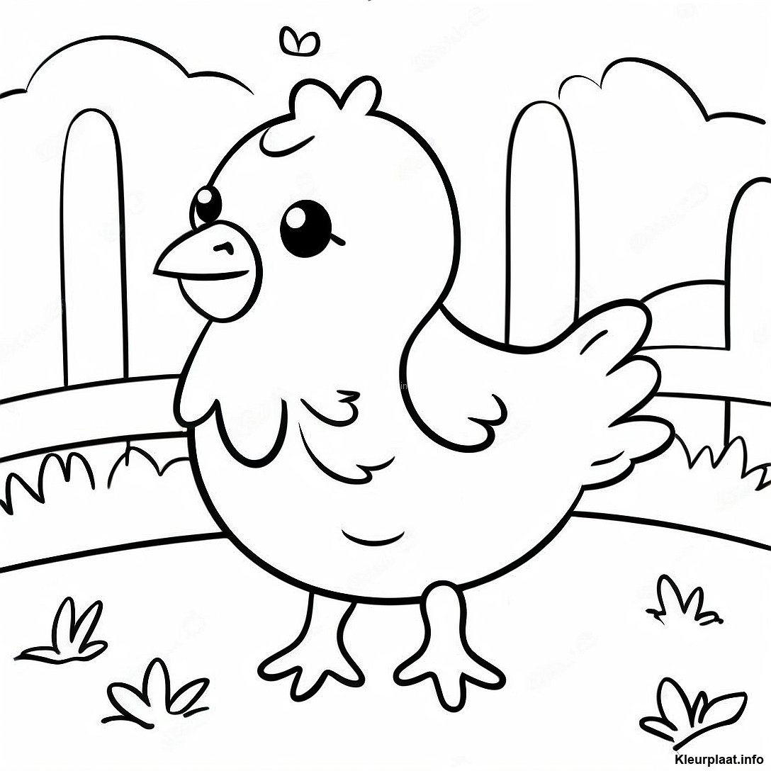 Kleurplaat Van Een Schattige Kip In Een Boerderij