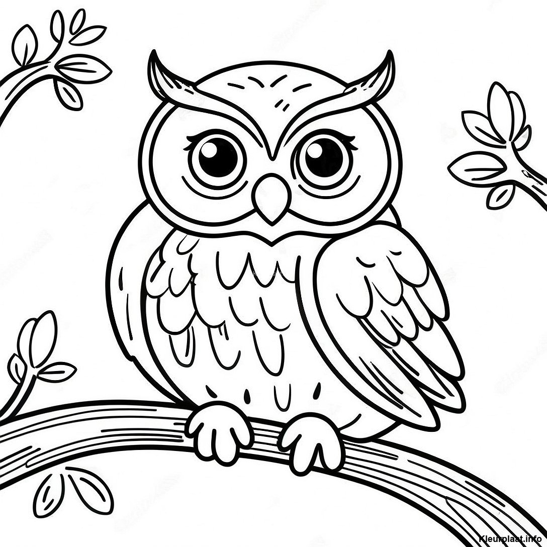 Kleurplaat Van Een Wijze Oude Uil Op Een Tak