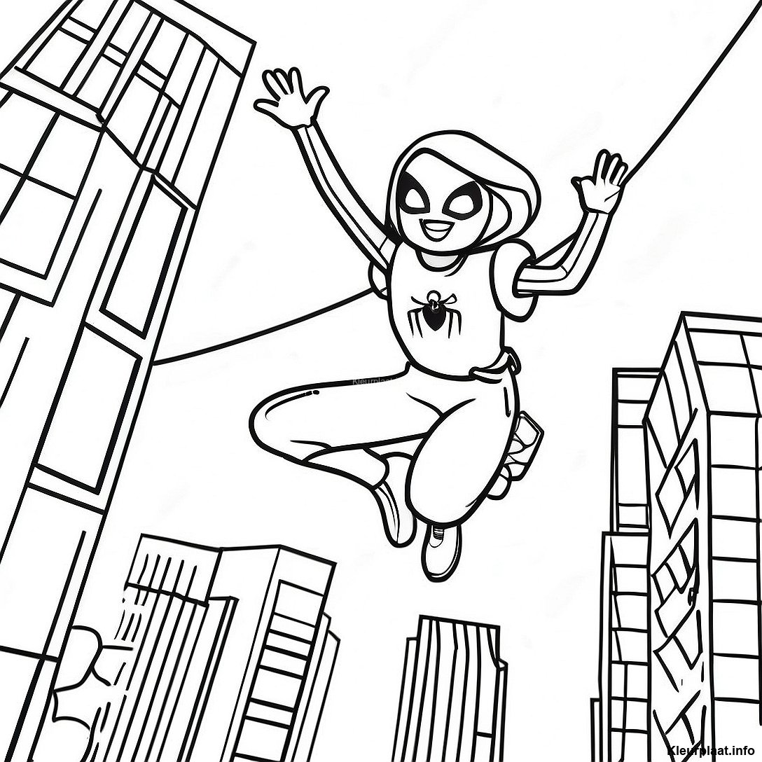 Kleurplaat Van Het Spinmeisje Dat Door De Stad Slingert