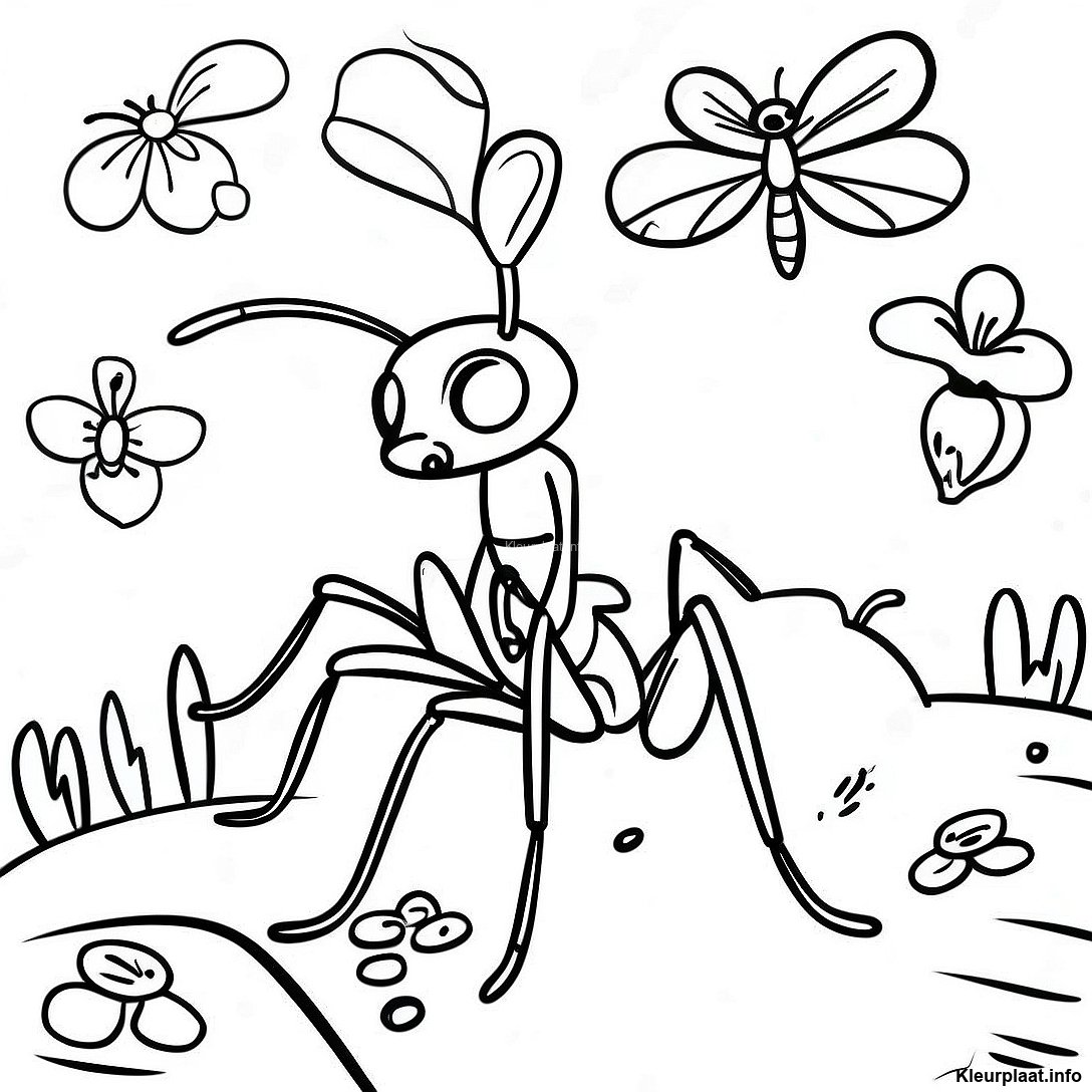 Kleurplaat Van Realistische Mier In De Natuur