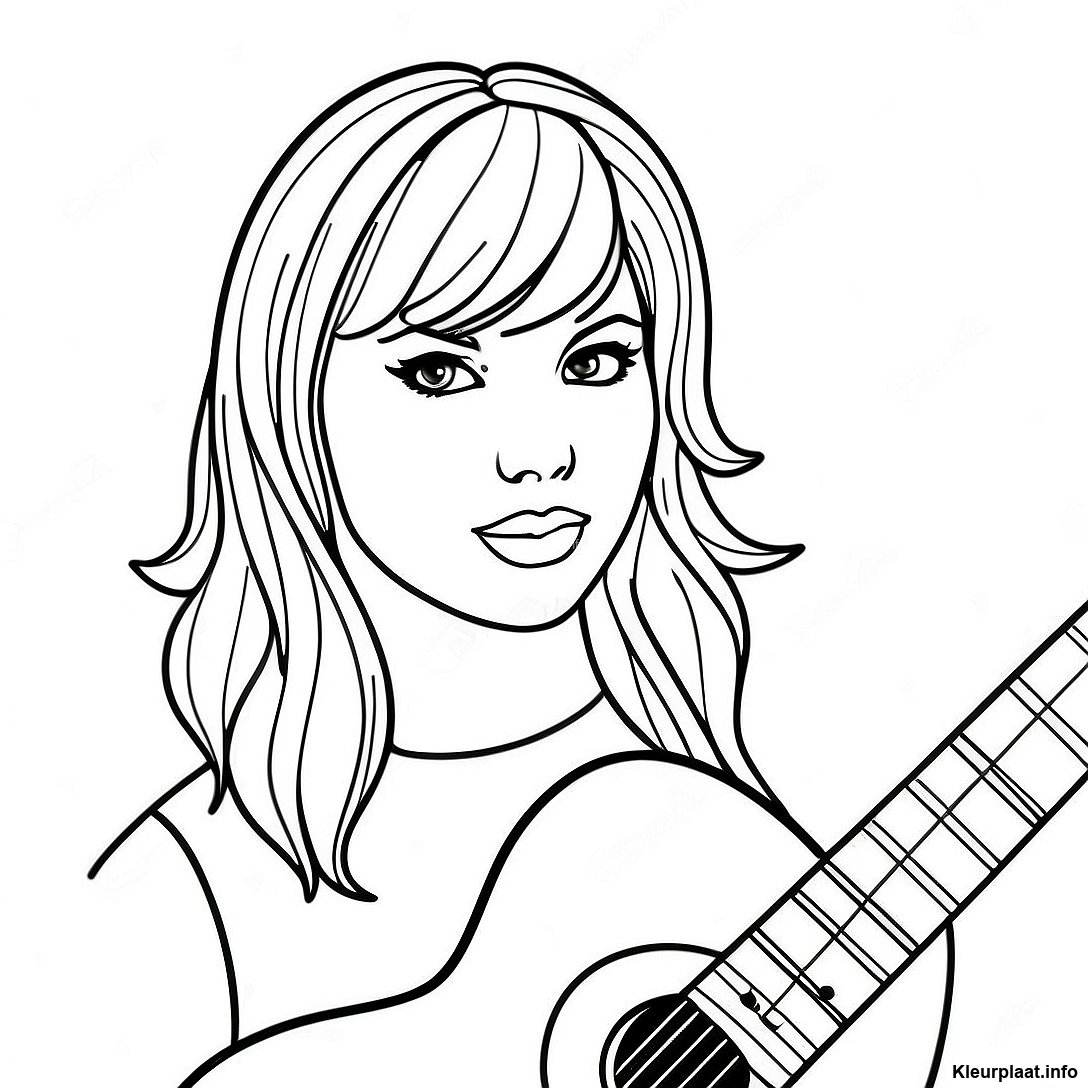 Download Afdrukbare PDF van Kleurplaat Van Taylor Swift Met Gitaar