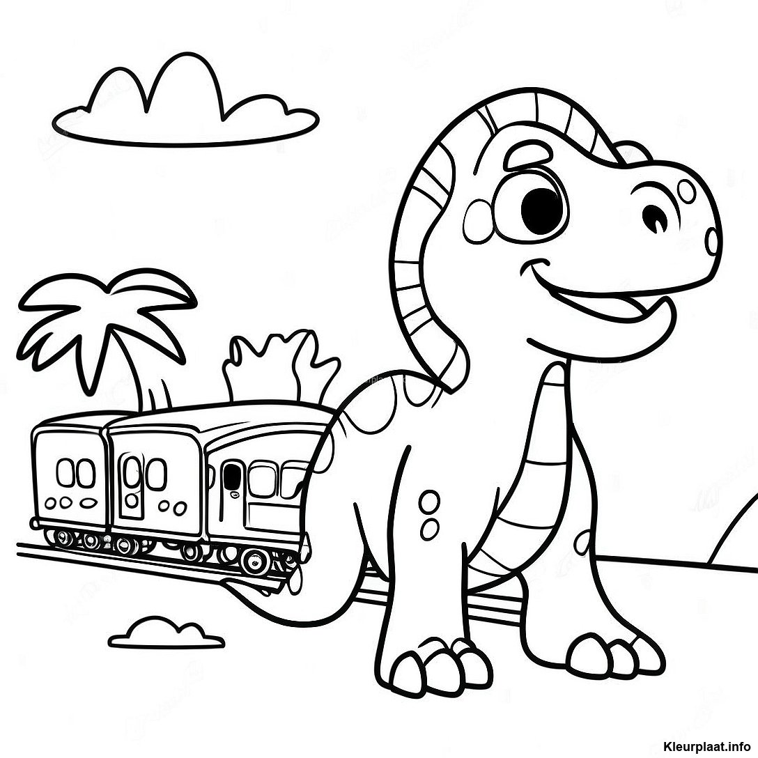 Kleurrijke Dino Trein Avontuur Kleurplaat