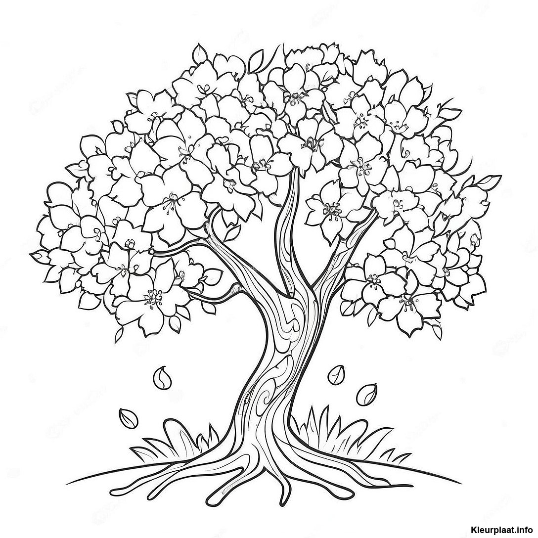 Kleurrijke Kersenbloesem Boom Kleurplaat