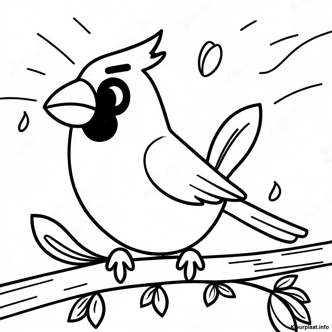 Kleurrijke Mannelijke Kardinaal Zingend Kleurplaat