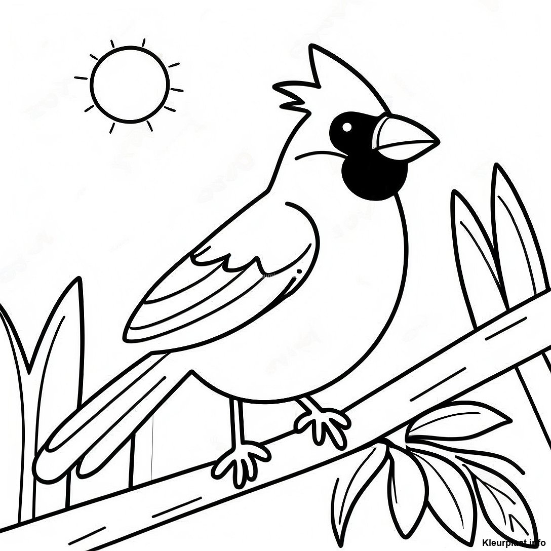 Kleurrijke Mannelijke Kardinaal Zingend Kleurplaat