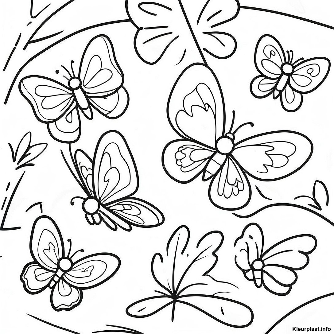 Kleurrijke Vlinders In Vlucht Kleurplaat