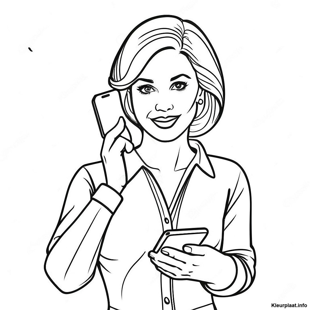 Moderne Tv Vrouw Met Smartphone Kleurplaat