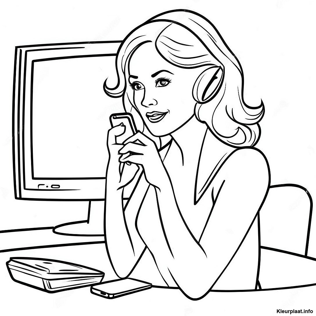Moderne Tv Vrouw Met Smartphone Kleurplaat