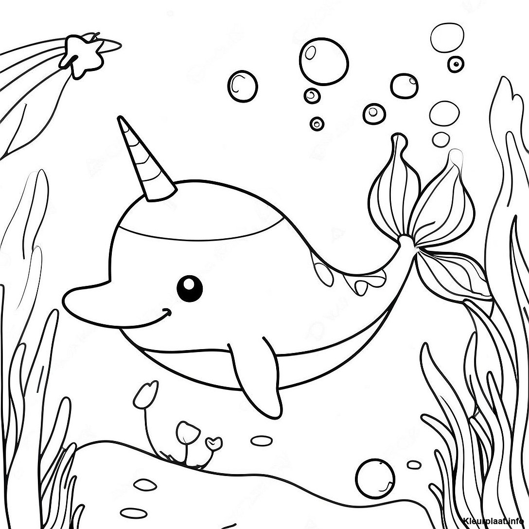 Download Afdrukbare PDF van Narwal Onderwater Avontuur Kleurplaat
