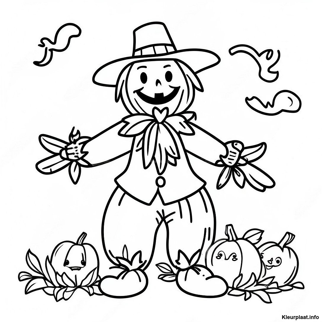 Ondeugende Vogelverschrikker Met Een Pompoen Kleurplaat