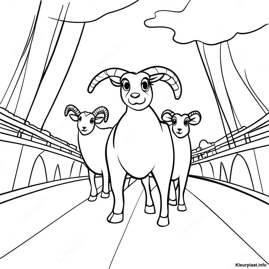 Download Afdrukbare PDF van Onverschrokken Billy Goats Die De Brug Oversteken Kleurplaat