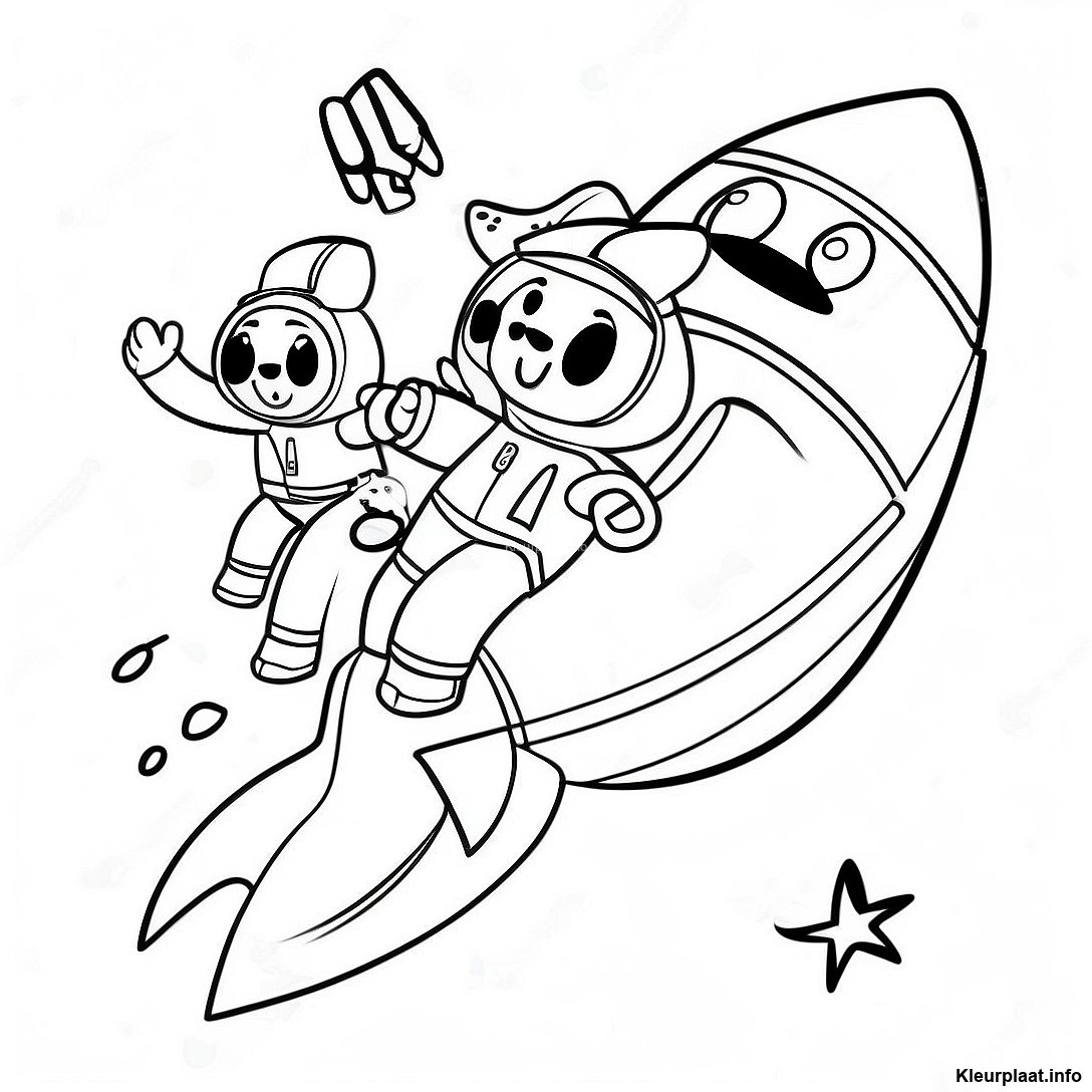 Download Afdrukbare PDF van Raket Met Astronauten Kleurplaat