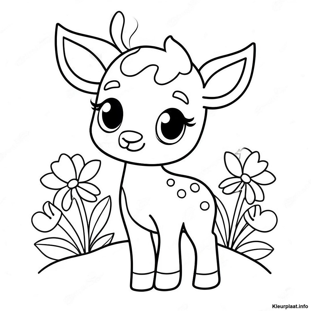 Schattig Hert Met Bloemen Kleurplaat