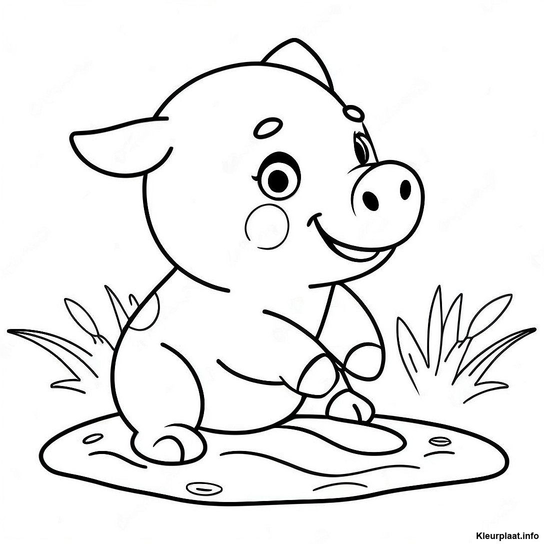 Download Afdrukbare PDF van Schattig Varkentje Dat In Modder Speelt Kleurplaat