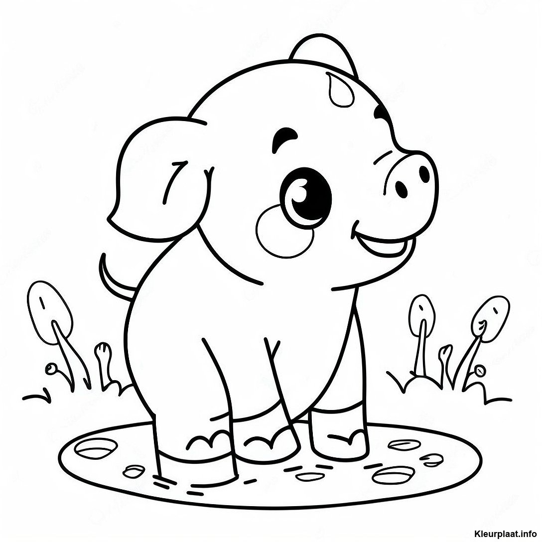 Download Afdrukbare PDF van Schattig Varkentje Dat In Modder Speelt Kleurplaat