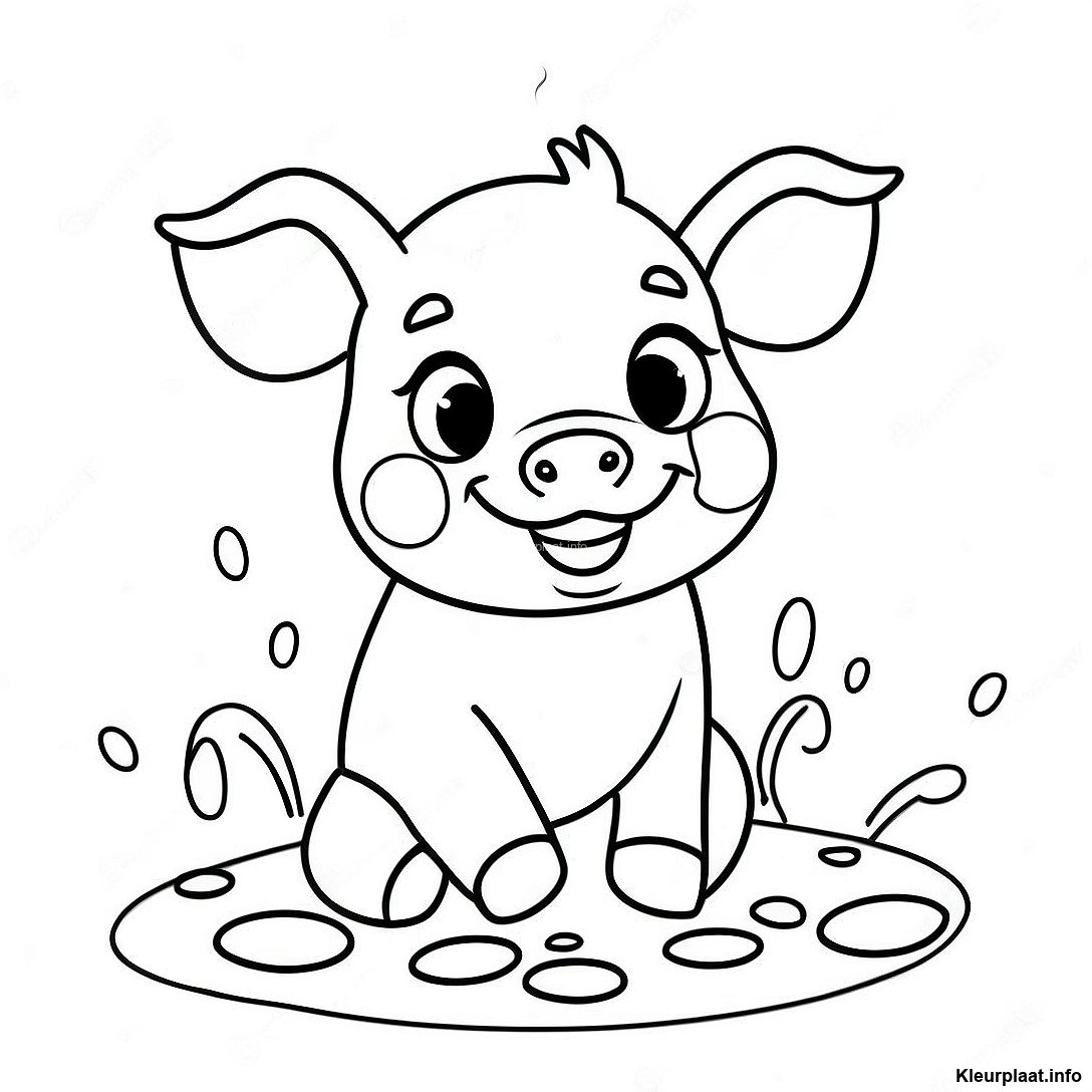 Download Afdrukbare PDF van Schattig Varkentje Dat In Modder Speelt Kleurplaat