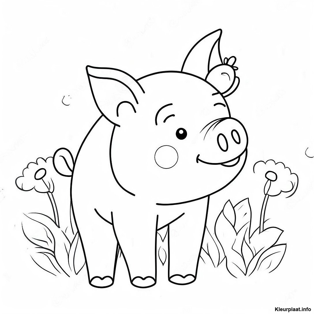 Schattig Varkentje Met Bloemen Kleurplaat