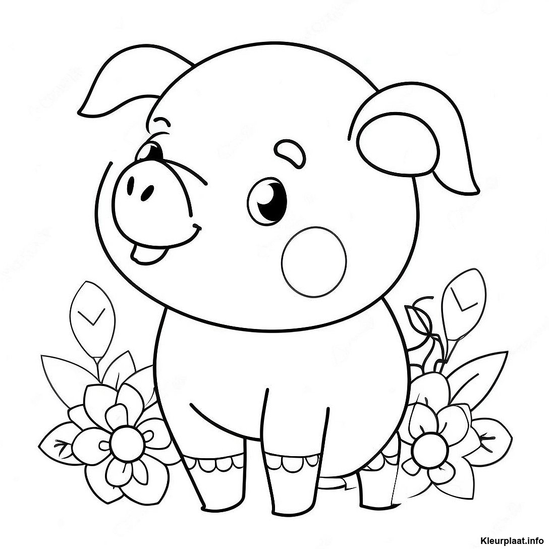 Schattig Varkentje Met Bloemen Kleurplaat 21010 4591