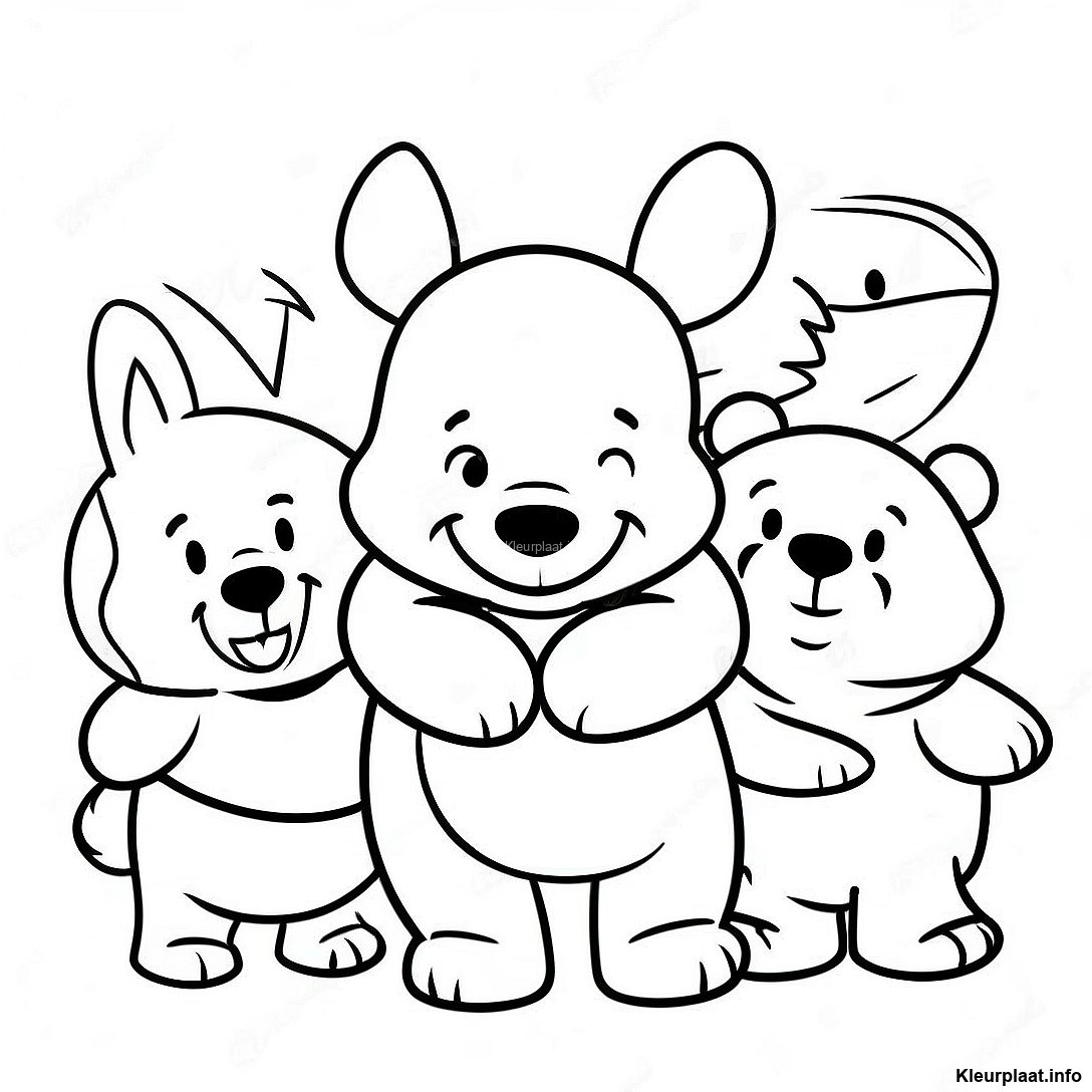 Schattige Baby Winnie De Poeh Met Vrienden Kleurplaat